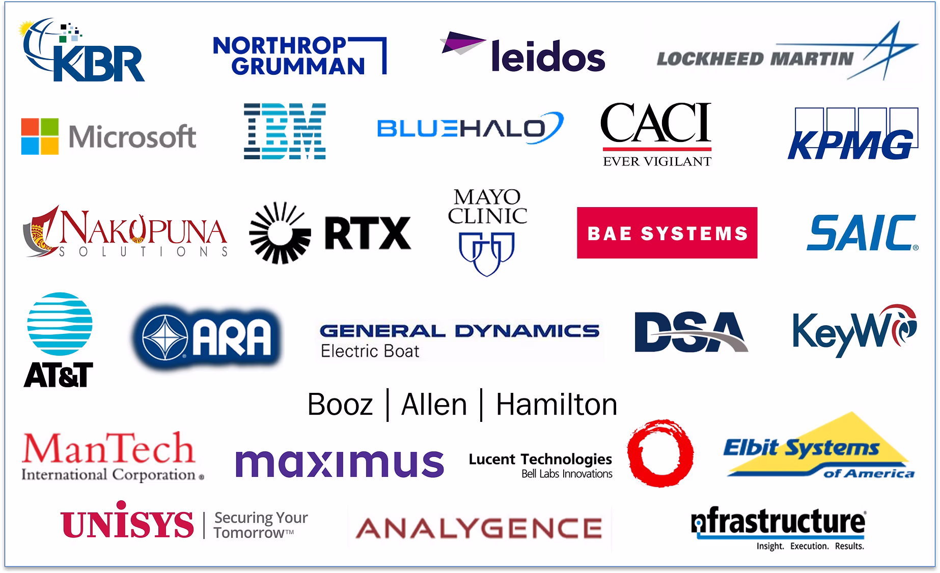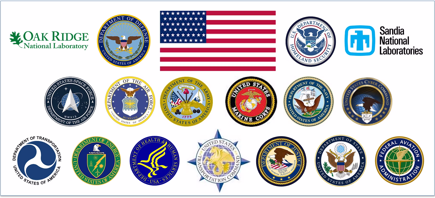 CIA, DIA, FBI, NSA, FAA, FERC, NASA, National Archives, NIMA, Oak Ridge National Labs, Sandia National Labs, U.S. Census Bureau